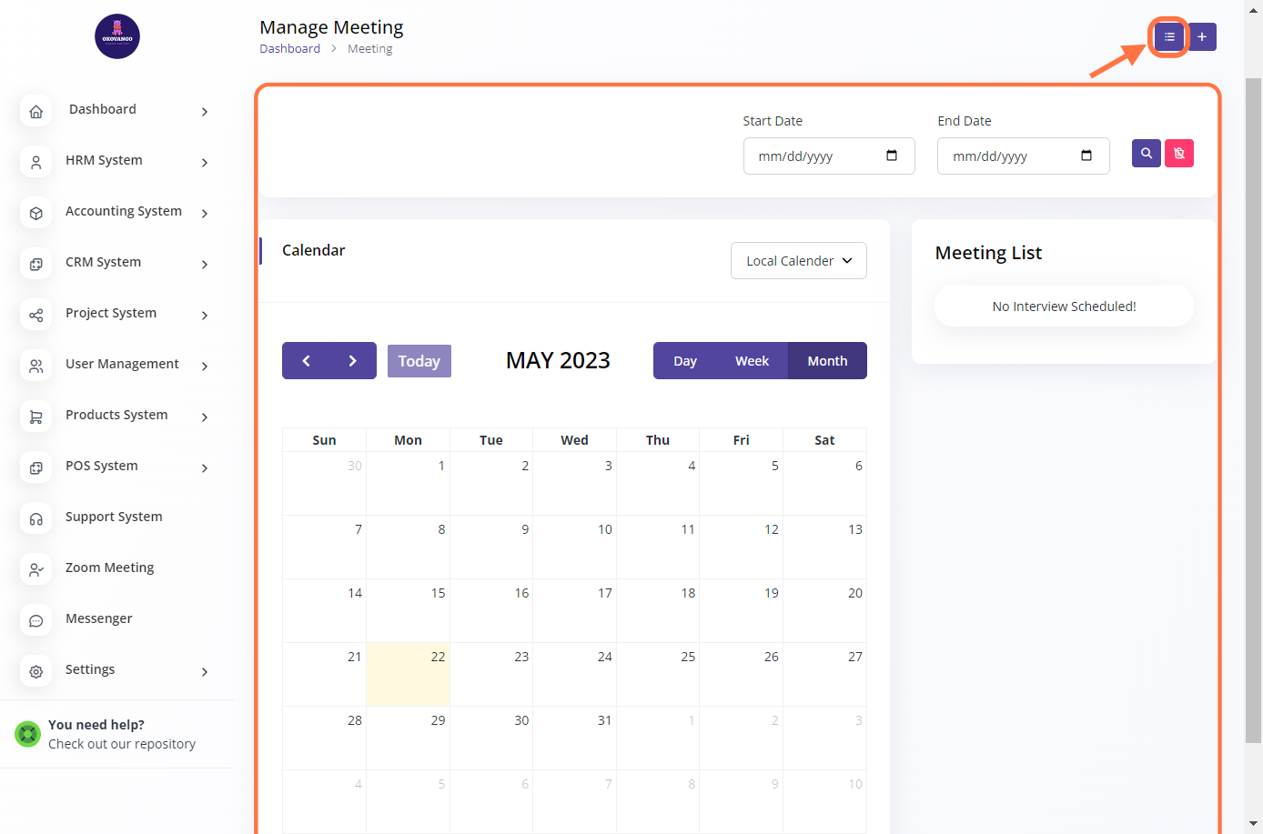 You can view a list of the meetings that have been scheduled within your organization. This provides you with an overview of all the meetings, including their details such as the meeting title, date, time, participants, and any additional notes or attachments. The list allows you to easily access and reference the information related to past or upcoming meetings, facilitating better organization and coordination of your schedule.