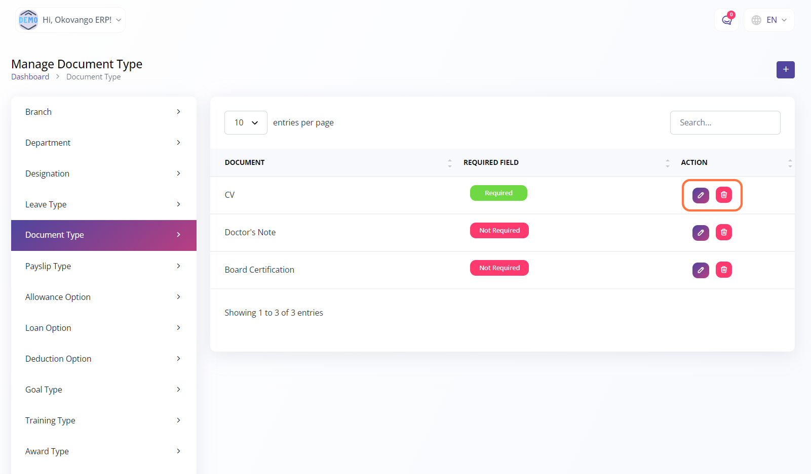 Once the document type is created, you will have the option to edit or delete it as needed. This allows you to make modifications to the document type's information or remove it from the system if required. The ability to edit and delete document types provides flexibility in managing and maintaining the list of document types based on your organization's changing needs and requirements.