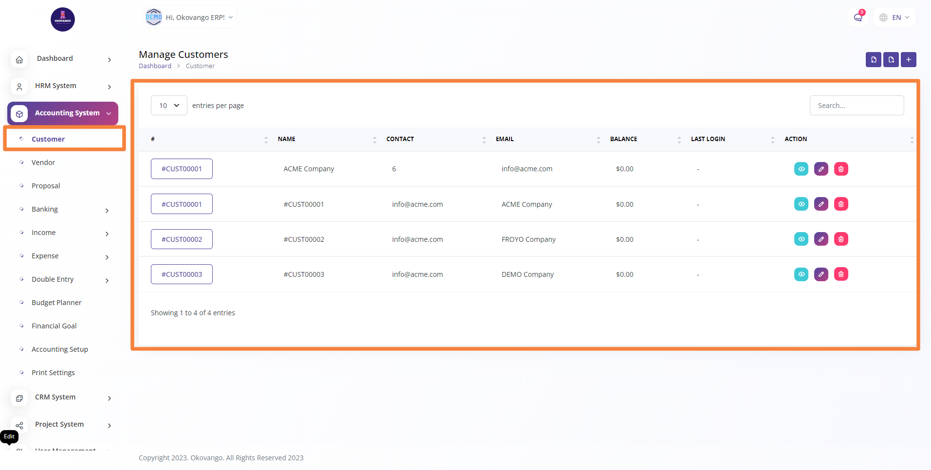 In the customer management section of the accounting ERP system, you can effectively handle all aspects of customer-related activities. This includes managing customer information, such as contact details, billing addresses, and payment terms. Additionally, you can track customer transactions, such as sales orders, invoices, and payments, allowing for accurate and up-to-date customer account management. The customer management section also enables you to generate customer statements, monitor customer balances, and analyze customer profitability. Overall, this section facilitates streamlined customer management and enhances customer relationship management within the accounting ERP system.