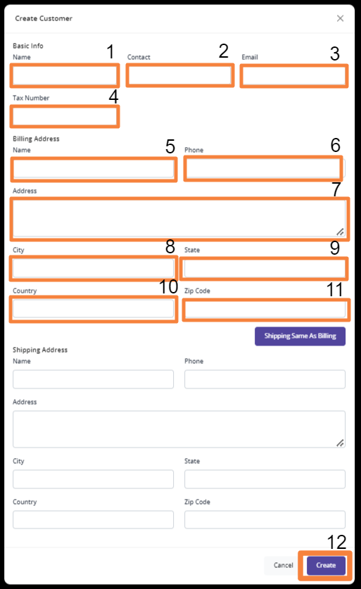 After clicking the create button, you can proceed to set up a customer by filling in the basic information. Follow these steps: