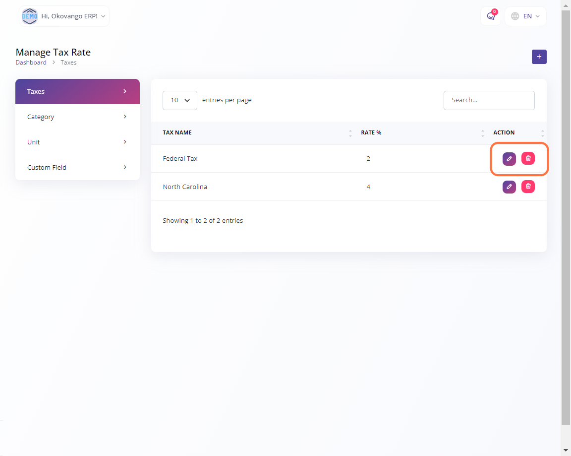 You can define the different tax rates applicable to your products or services. You can specify the tax name, rate percentage, and any additional information required for accurate tax calculations. This ensures that your invoices and financial reports reflect the correct tax amounts.