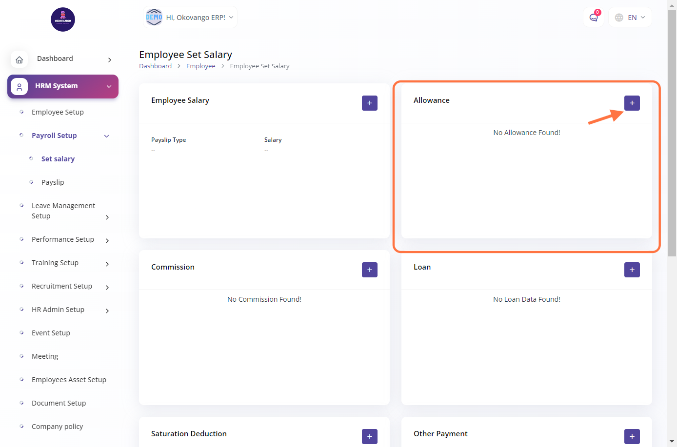 In this section, you can set up employee salaries within the ERP system. Salary setup involves defining the salary structure, components, and calculations for each employee. You can configure salary scales, grades, and levels based on organizational policies and job roles. This includes determining base salary, allowances, bonuses, and deductions. Salary components such as basic pay, overtime, incentives, and benefits can be specified. By setting up employee salaries, the ERP system ensures accurate and consistent salary calculations, facilitates payroll processing, and provides transparency in employee compensation.