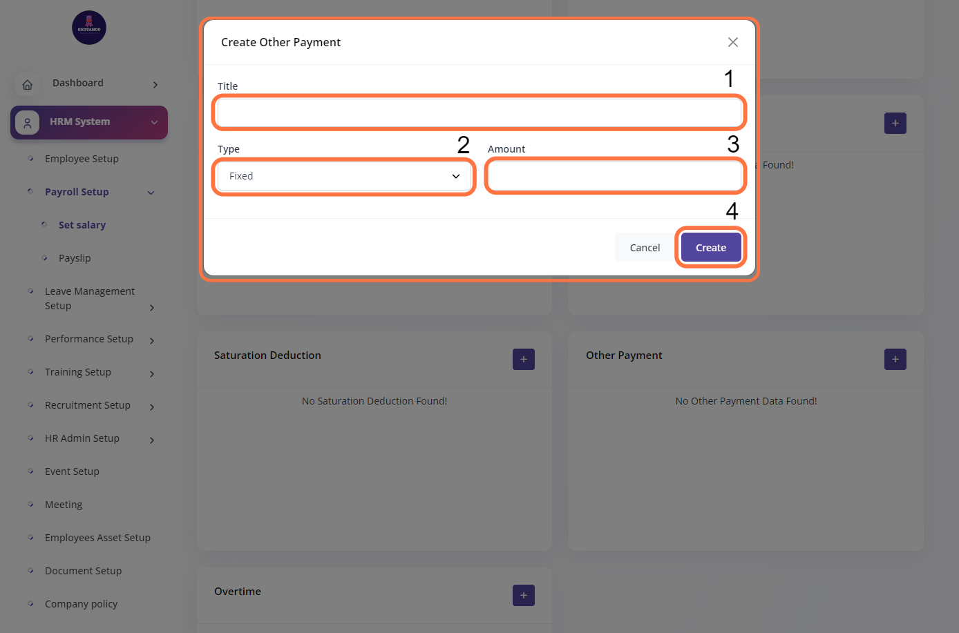 After clicking the create button, you can proceed to set up an employee's salary by following these steps: