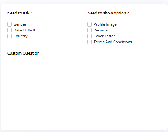 In addition to the job details, you can also configure the necessary question options for applicants. These options may include: