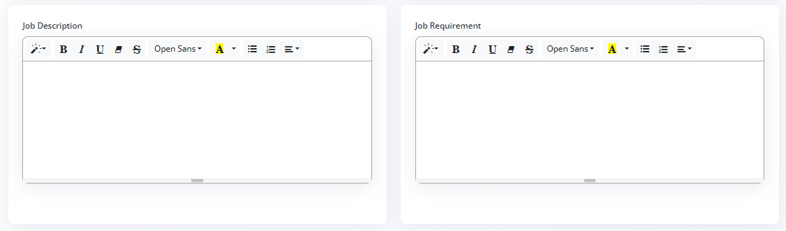 Job Description: You can enter a comprehensive description of the job, outlining the roles, responsibilities, and tasks associated with the position. This helps applicants understand the nature of the job and their potential responsibilities.