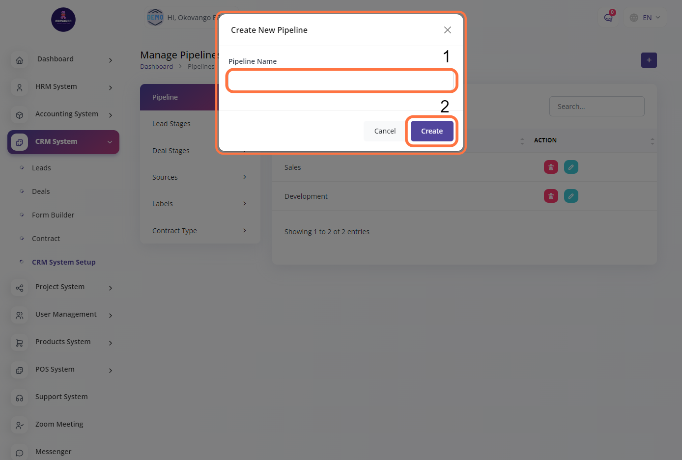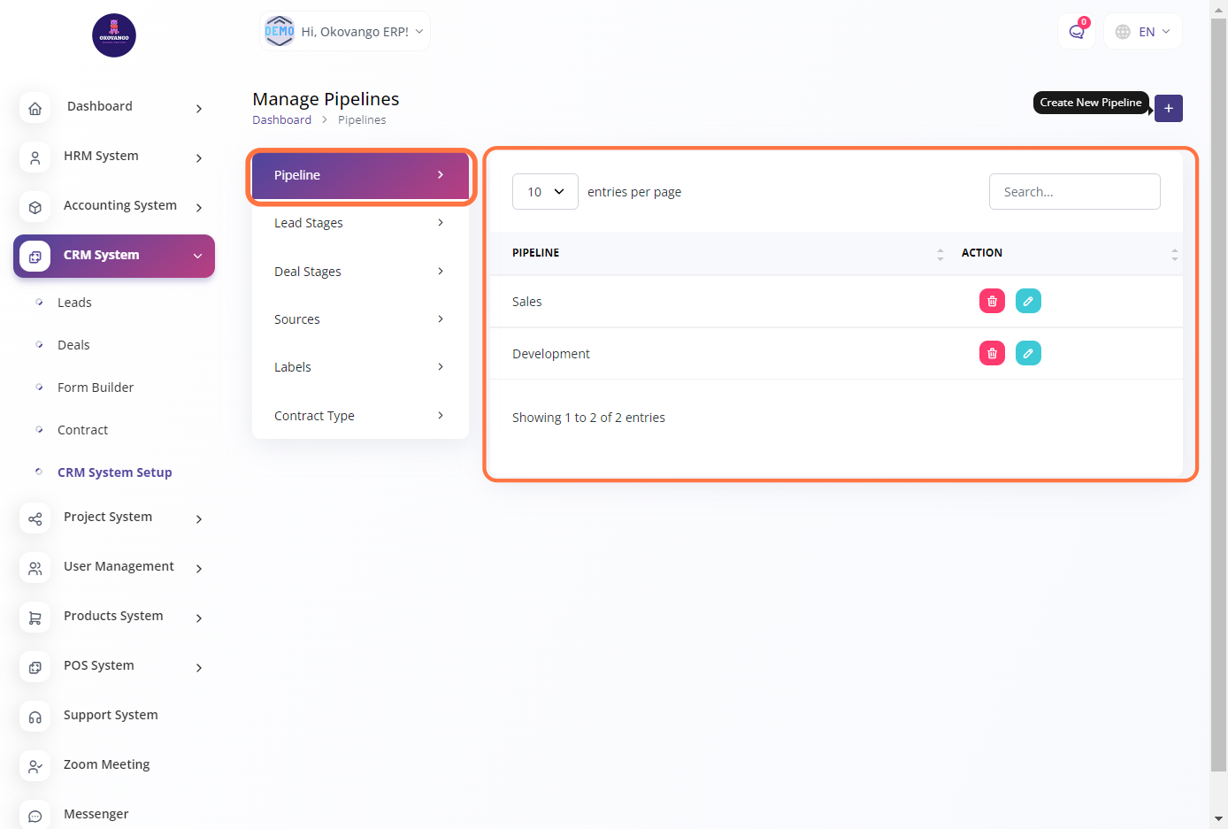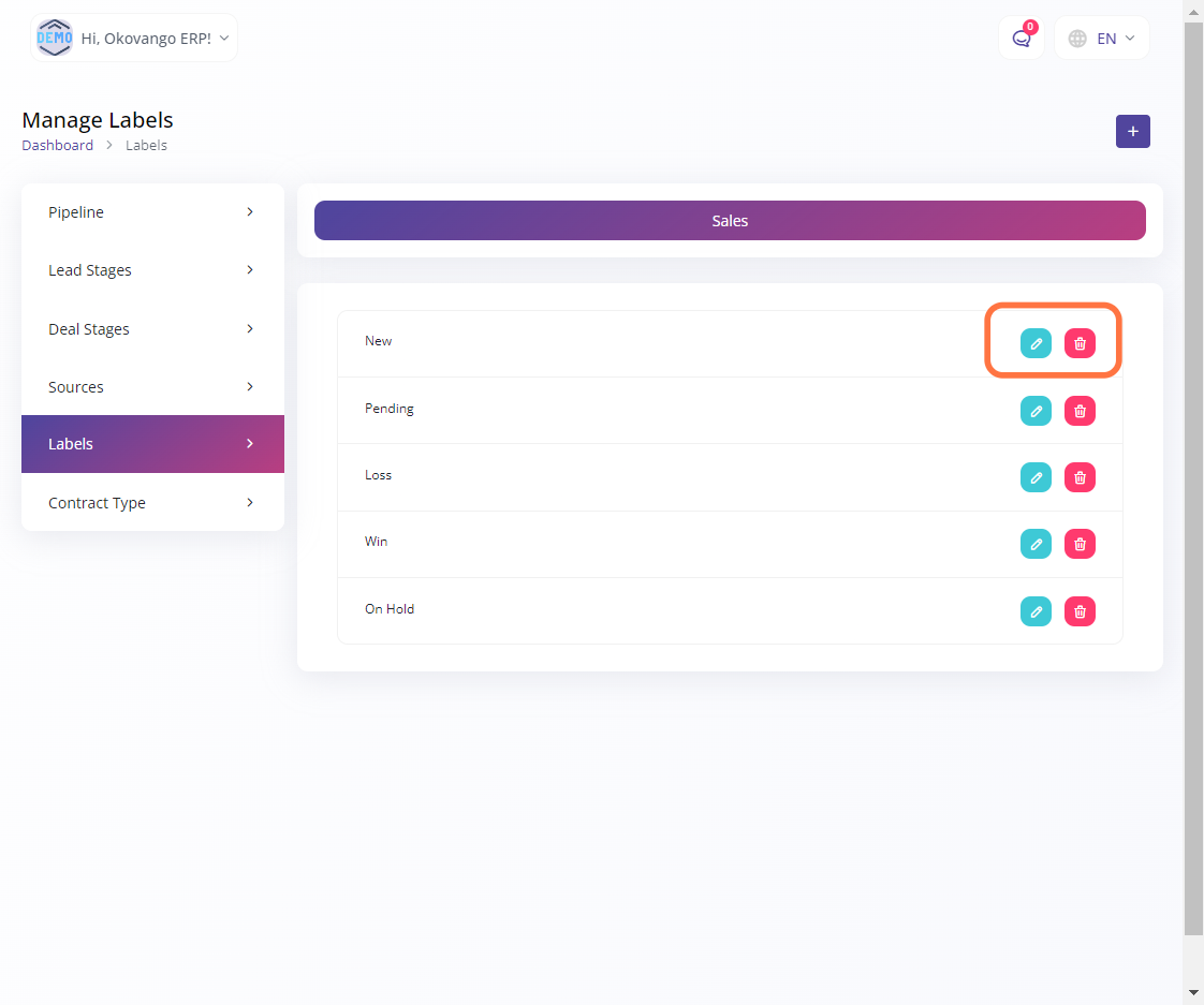 The CRM system allows you to manage and track interactions with your customers, leads, and prospects. You can set up various features and functionalities of the CRM system, such as contact Sales pipeline, Lead stages, deal stages, sources, labels and contract type. By customizing the CRM system to your organization's needs, you can enhance your customer relationships, streamline sales processes, and improve overall customer satisfaction.