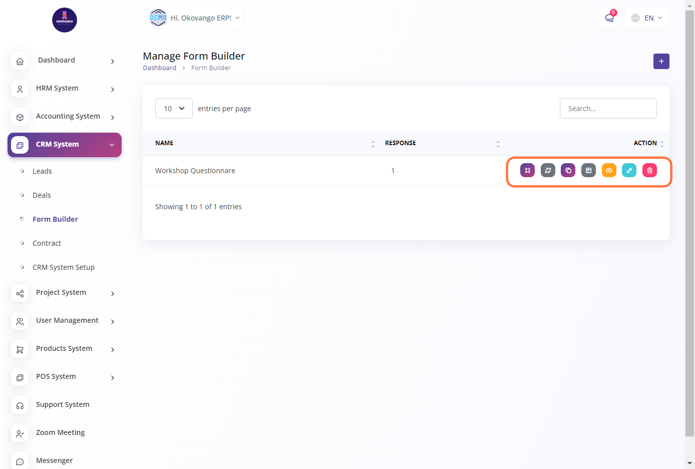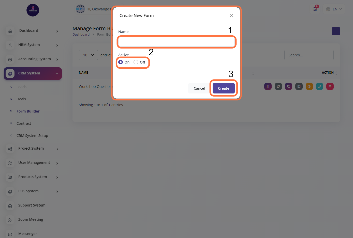 In the CRM form builder section, you can create and customize forms that are used for capturing customer data and interactions within your customer relationship management (CRM) system. This feature provides a user-friendly interface where you can design and configure forms according to your specific requirements. You can add various form fields such as text fields, dropdown menus, checkboxes, and more to collect the necessary information from your customers. By creating custom forms, you can streamline data collection, ensure consistency, and tailor the form fields to align with your CRM processes and data needs.